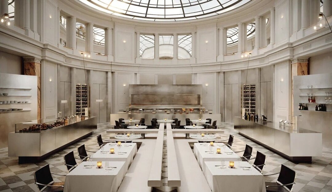Совсем скоро откроется проект московского ресторатора Александра Оганезова в бывшем здании Первого частного коммерческого банка. В роскошном атриуме — итальянский ресторан и винтовая лестница, которая ведет в сигарный клуб с видом на Зимний дворец, а еще огромное количество охранных обязательств и работа с КГИОП: многие элементы пришлось восстанавливать по архивным фотографиям.