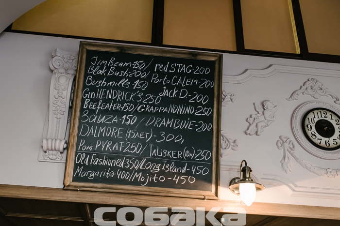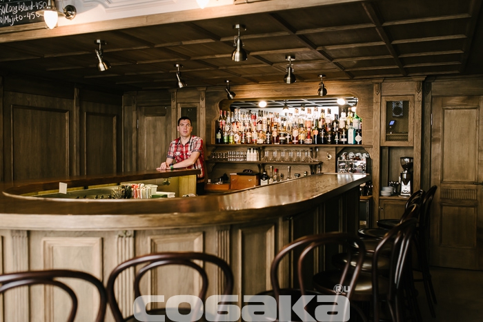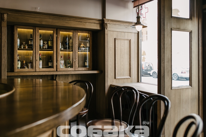 Находки-бутылки, будь-то полугар или пятнадцатилетний виски, собирают в шкафчиках, которые одновременно служат и декоративным убранством. Другие элементы — это портрет Дмитрия Михайловича Менделеева, который строго смотрит на тех, кто на практике изучает предмет его диссертации «О соединении спирта с водой», и барельефы с пухлыми ангелами. Все пространство занимает барная стойка в форме подковы: десять метров дуба от мастера Киры Хлопина готовы принять что-то около больше двадцати человек. Что говорят гости напротив, можно услышать без труда — кто попросит коктейль, «чтоб была полынь и горечь», кто жаждет выпить, «чтобы запела душа». На доску-меню вынесена только классика: негрони, «Лонг-Айленд», «Белый русский» и мохито, все остальное нужно спрашивать у опытных барменов. Они по заведениям группы курсируют по эдакой программе ротации, чтобы не заскучать на одном месте. Родные лица видеть приятно, но хочется, чтобы в поле зрения попал и какой-нибудь по-настоящему «вау» фактор: у Terminal есть история, у Fiddler's Green и у хоть и закрывшихся «Соусов» – концепция, в The Hat – музыка. Не хочется, чтобы Apteka запоминалась только своими «выдающимися» размерами.