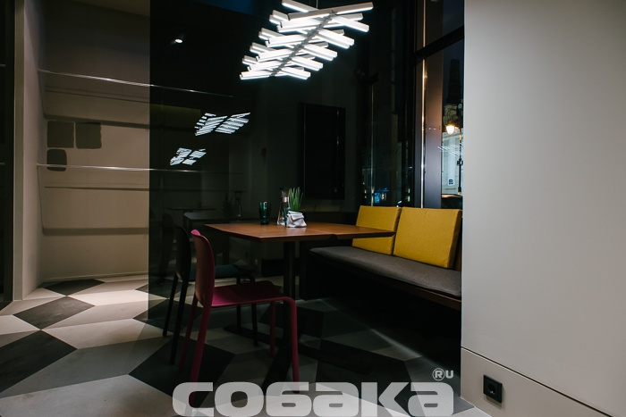 Ресторанный долгострой ждали еще с осени 2013 года, когда редакция начала вести переговоры об анонсирущих материалах с идеологом заведения Валентином Филатовым, до этого трудившимся арт-директором в «Доме Быта». Ожидания поэтому успели накопиться, да и место обязывало не на шутку: культовый клуб «Китайский летчик Джао Да» в качестве прежнего арендатора, вид на Пантелеймоновскую церковь канонической композиции, знаменитые соседи — люксовый VOX для профессиональных гурманов и «Ботаника» — цитадель светского вегетарианства. Градусов тем самым ожиданиям добавлял и свод правил, которые хозяин придумал для медийного освещения своего детища: например, съемка возможна чуть ли не только в темноте, общие планы под строгим запретом. Понятное дело, что после прохождения такого квеста возникает горячее желание либо сразу же изойти слезами восторга, либо регистрировать составляющие проекта со всей строгостью.