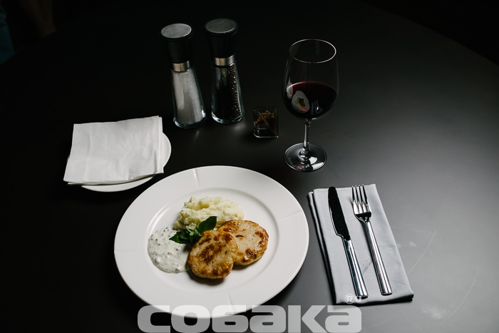 А вот кухня, такое чувство, не на первом месте среди приоритетов ресторана. Меню очень простое: карпаччо, борщ, пицца с лососем и тальолини с цукини и креветками, стейк и бефстроганоф. Так просто давно не делают, и это даже показалось бы свежим ходом, если бы не цены, средний чек из которых достигает полутора тысяч рублей без вина, и иногда любительское качество самих блюд. Если котлеты из щуки и классическое вителло тонато не вызывает нареканий, куриная печень в устричном соусе оказывается пережаренной, деликатная мурманская треска зачем-то тоже имеет плотную корочку обжарки. Одним словом, мы за то, чтобы штурвал кухни «Полета» вели более твердой рукой.