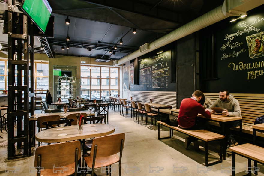 Невероятно, но факт — вот она, супремодная пивная, где рядом сидядят топ-менеджеры и хипстеры, пьют пиво и едят сосиски. Первые разглядывают бюст некой дамы в телефоне, вторые обсуждают концерт группы «Есть Есть Есть», но одинаково дружно просят обновить бокалы кто с «горьким насыщенный сортом-легендой», кто с «традиционным чешским пилзнером». Слово, делающее это невероятным — «модная». Тут реально классно: нет специфического стаффа, характерного для пабов, в мягком индастриале интерьера могли бы с тем же успехом кормить крабкейками. Монокухня — основу меню составляют сосиски всевозможных мастей — уже сама по себе трендовая концепция, но поздравить владельцев хочется именно с тем, что распитие пива именно у них окончательно утратило привкус досуга не достаточно высокой пробы и ощущается естественно и здорово, будь ты хоть Грейс Келли.