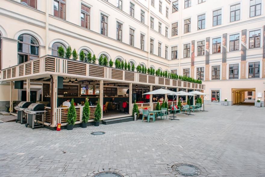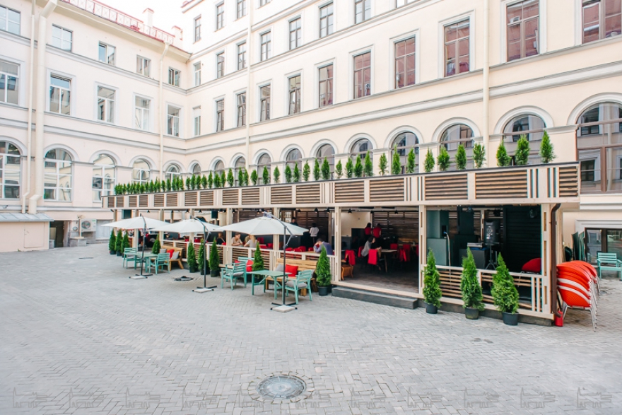 Главный петербургский двор лета 2015, обустроенный промоутерской командой s11 — бит, бар и кухня там не затихает, кажется, круглые сутки.