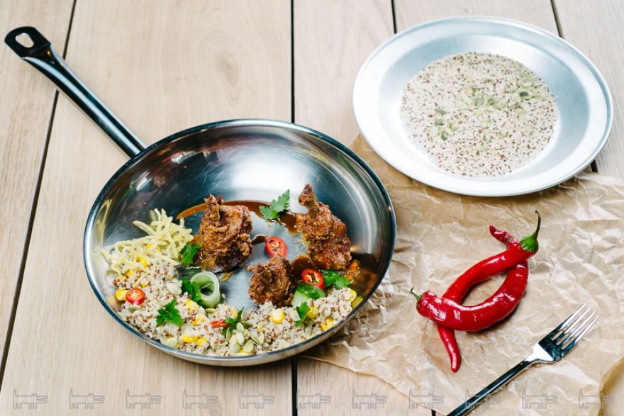 Если разложить харизму места не составляющие, кухне среди них отведено не первое место. Но по качеству задумок она вполне могла бы считаться авторской. В меню у Дениса Кудряшова найдутся грибные аранчини с томатной сальсой, запеченный луковый суп, крем-суп из шпината с арахисом и просто невероятная гречневая панакота. Владельцы Co-op Garage любят говорить, что они — про революционный дух: по ночам, конечно, бойцовский клуб здесь, конечно, не открывается, но свежесть формата определенно чувствуется — по крайней мере, холодное лето 2015 года запомнится именно ею.