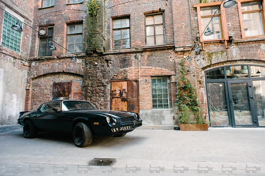 Команде Jack & Chan удалось заведение, стилистически близкое к идеалу — кафе-гараж, где бильярдные шары гоняют герои, как-будто только что со съемок «Бойцовой рыбки» (этот фильм — просто бренд-бук по романтике уличных банд), а за столиками на дне двора-колодца тянет ирландский виски пара полуночников с одноименной картины Эдварда Хоппера. Пространство между и без того киногеничных стен с культурными слоями граффити дизайнер Андрей Перепечко организовал решетками старинных лифтов и маятниками дверей-купе так, что ты чувствуешь себя на съемочной площадке спин-оффа, где окружающие тебя гости вот-вот затанцуют под ритмы «Вестсайдской истории», а с кухни выйдет Тайлер Дерден.