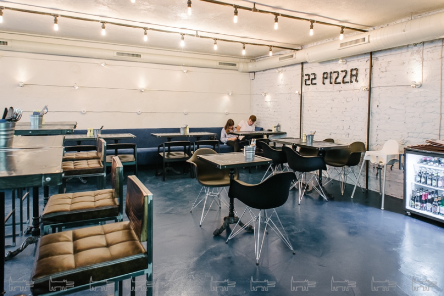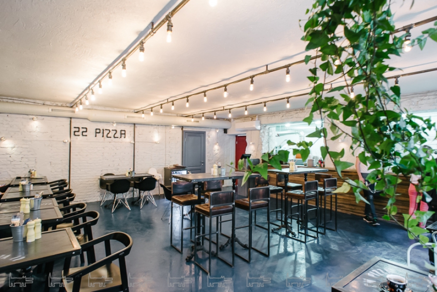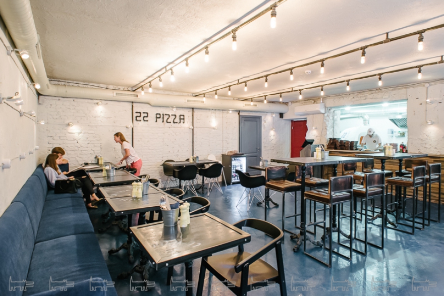 В меню титульный продукт разделен на два раздела. «Старый Свет» — дань традициям родины пиццы: маринара, маргарита, пепперони, неополитана с анчоусами и везувиана с рикоттой и салями. «Новый Свет» предполагает творческое сочетание вкусов и самодельные ингредиенты: на одной пицце собраны поркетта с шалфеем, грибы и руккола, на другой — утка и тыква, на третьей — груша, горгонзола и колбаса суджук. Сделанная в печи пицца может иметь почерневший от жара хлебный пузырь корочки, влажную полоску в мякише, но это с лихвой искупает дух, которым дышит хрустящее печеное тесто — тем более, что начинки вовсю стараются соответствовать: взять хотя бы то, как здорово спеваются сладость утки конфи с сахарной карамелизованной тыквой. Остальное меню — ладные секции по несколько позиций. В закусках удачно выступает анжолетти с томатным соусом (это то же тесто для пиццы, только во фритюре), в салатах — тот, что с кружевной поркеттой и трюфельным соусом, пусть даже трюфель там почему-то добавка к айоли, в десертах перспективно выглядит грушевый крамбл с облепихой. Пиццерия Starita в Неаполе, где стажировались хозяева, за вечер успевает напечь пиццы для восемьсот сорока человек — «22 cm» вправе рассчитывать со временем если не на такое же внимание, то точно на место в десятке лучших пицц Петербурга.