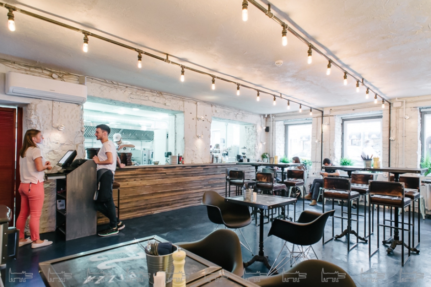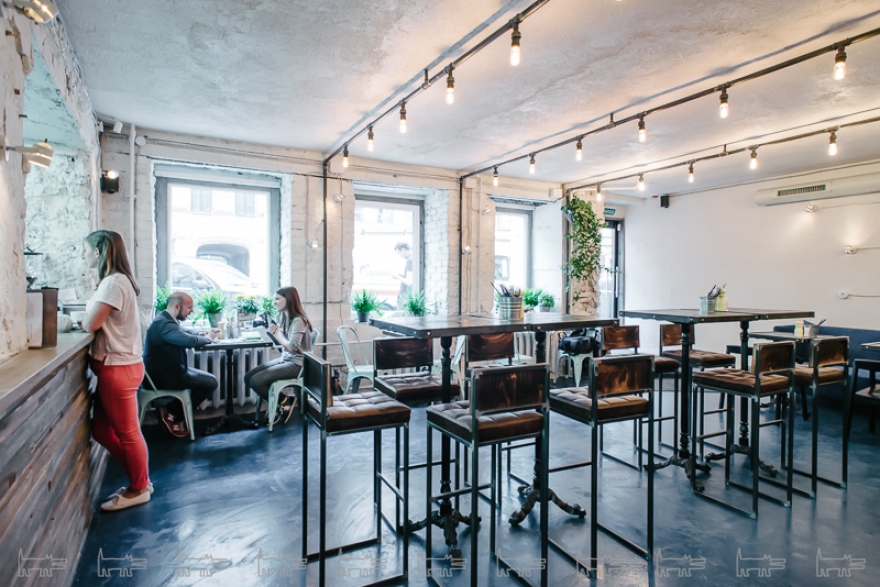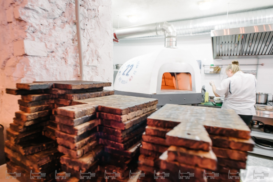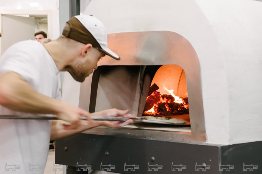Рестораторы Эльдар Кабиров, начинавший с проекта Abajour, и Андрей Петухов, вместе запустившие неклассический стейк-хаус Red. Steak & Wine – одни из самых располагающих в городе: поэтому уже в первый день работы их нового проекта столы небольшого, на тридцать пять мест, кафе, заполнены. А может, сыграло свою роль не только их радушие, но и эффектная предыстория: Эльдар и Андрей ездили стажироваться в знаменитую неаполитанскую пиццерию Starita, где они обслуживали очереди страждущих приобщиться к магии маринары — самой простой пиццы с томатным соусом с чесноком и травами, с 6 утра месили сотни килограмм теста возле полыхающей жаром печи. Точно такую же они установили и у себя в кафе: именно из них рвется наружу самый аппетитный в мире аромат — только-только выпеченного теста, именно в них происходит священнодействие приготовления еды на огне. Очень аскетичный интерьер — побеленный кирпич, параллельные прямые индустриальных лампочек, сваренный металл стульев — как-будто призван не формировать атмосферу, а служит для того, чтобы просто не отвлекать от происходящего на открытой кухне ритуала ручной работы с тестом и огнем.