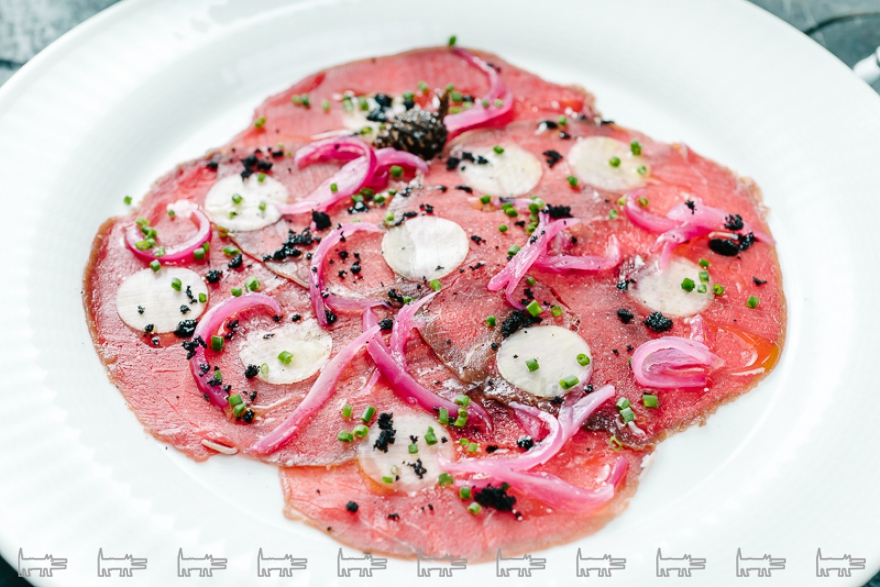 Меню: Специализация кухни — мясо в разном своем проявлении: сырое, вареное, тушеное, шеи, щечки, хвосты. Заглавный продукт дают бычки, герметизированно выращенные для заведения на кукурузном откорме в Воронежской области, в хозяйстве «Заречное» компании Prime Beef. С мраморной говядиной первыми предлагают познакомиться тартары — классический, с кунжутным соусом, с дробленым перцем и пармезаном, с солеными огурцами и с черным трюфелем. Стейки, которых в меню двадцать штук, носят не имена своих отрубов, а художественные никнеймы: «Деревенский» — стриплойн на кости, «Муромец» —портерхаус, «Квазимодо»— головная часть вырезки, мраморная и нежная, разве что выглядит не самой аккуратной, за что и получила имя горбуна из Нотр-Дама.