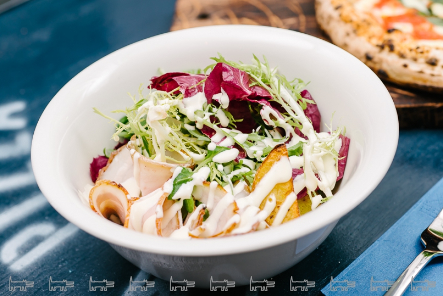 Меню: В меню титульный продукт разделен на два раздела. «Старый Свет» — дань традициям родины пиццы: маринара, маргарита, пепперони, неополитана с анчоусами и везувиана с рикоттой и салями. «Новый Свет» предполагает творческое сочетание вкусов и самодельные ингредиенты: на одной пицце собраны поркетта с шалфеем, грибы и руккола, на другой — утка и тыква, на третьей — груша, горгонзола и колбаса суджук.