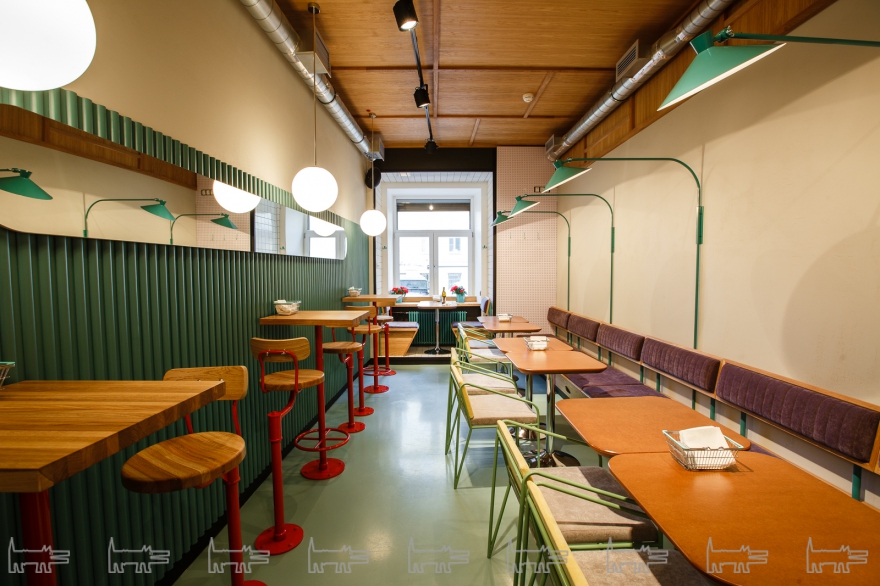 Наличие сангриты — островатой томатно-цитрусовой амброзии, которую добавляют в Bloody Mary, самостоятельным напитком — удачный ход, и таких мелочей в Doggy Dog много. Во время завтрака яичницами с булочками, беконом, фасолью и сардельками кофе и чай ты можешь сам пополнять себе на станции самообслуживания. Агентство Paum, знакомое городу оформлением бара «Кабинет» Сэма Коняхина, заботливо оборудовали коридор микробанкеткой, а в оконном проеме сделали столик на двоих с цветами в горшках. Пусть пока один из списка ингредиентов в хот-дог могут не доложить — что, кстати, все равно незаметно за щедростью порции, скоро в меню введут крабовый хот-дог и просекко: стол для двоих пустовать явно не будет.