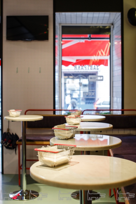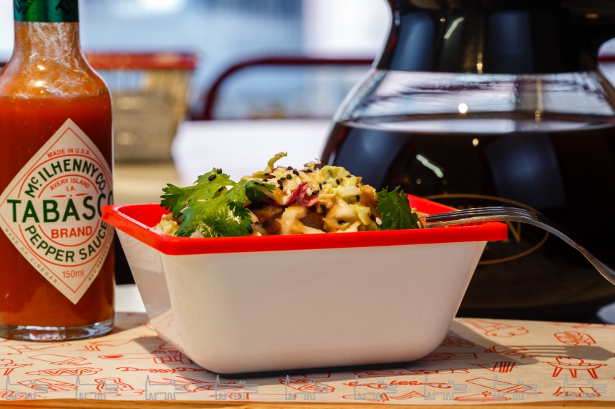 Хот-доги на улице Восстания не раздают с тележки как в Верхнем Манхэттене, а подают на столы в плетеных корзинах: между булочками кроме положенных по рецепту сосисок помещается столько продуктов, что из них вышла бы самостоятельная закуска, посвященная кулинарии разных стран. В греческий хот-дог кладут сыр фету, помидоры черри, зеленые и черные оливки, листья салата и йогурто-огуречный соус цацики, в корейский — капусту кимчи, подмаринованные огурцы, сладкий лук, кинзу, кунжут и сладкий чили, в мексиканский — фасоль, кукурузу, авокадо, томаты и халапеньо. Возьми к первому имбирно-лаймовый лимонад, ко второму — пряную томатную сангриту, а к третьему — черносмородиновый сидр — и вот это уже не перекус на пит-стопе, а законченный ланч, обед или даже ужин. Для основательности можно к каждому из них присовокупить салат — например, из свежих овощей с медово-лимонной заправкой или цацики.
