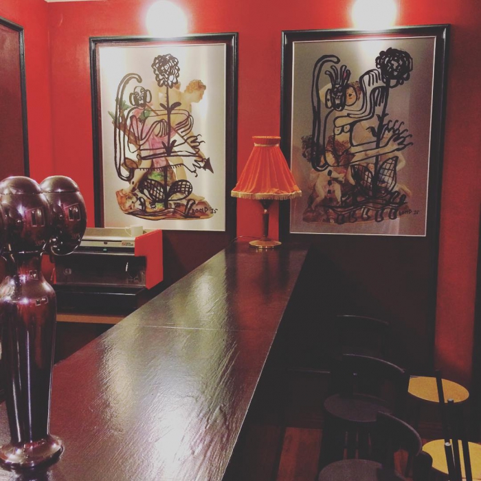 Напомним, что при создании интерьеров заведения команда ориентировалась на атмосферу фильма «Реальные упыри». В итоге получилась петербургская версия вампирского дома: в Kunst собрали антикварную и винтажную мебель с европейских блошиных рынков, а на стены повесили картины современных художников – в том числе и самого Бондарева.