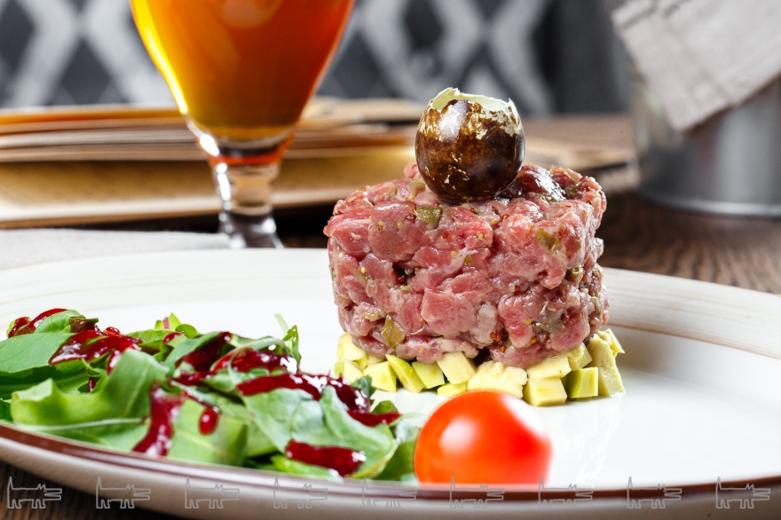 Меню чем-то напоминает гроссбух — объемом и закладками. Первой отмечен мясной стрифуд, где, среди прочего, задекларированы сендвич с копченой индейкой, мексиканский бургер и шаверма с бараниной. Второй закладкой — закуски: там, например, есть переиначеннное капрезе — томат там обожжен с сахаром. В горячих блюдах — бифштекс, куриная грудка и несколько рыбных блюд, отдельно дана фирменная секция «Гриль-бар». Ее позиции готовят на установленном прямо в зале японском камадо: этот овальный керамический агрегат позволяет контролировать температуру нагрева и способен заменить сразу мангал, коптильню и духовую печь. Со степенью прожарки действительно справляются неплохо, но есть вопросы к мясу: оно немного не дотягивает до мраморности и может не повезти с топ блейдом — часть этого отруба с жилой требует сувида, так как на гриле прожилки не успевают растворится и резать такой кусок одно мучение. А вот среди соусов, один из который полагается по умолчанию, есть славный апельсиново-имбирный — свей цитрусовой яркостью он неожиданно раскрывает мясной дух. Карта с крафтовым пивом в United Butchers, в свою очередь, похожа не гроссбух, а скорее на географический справочник — она разбита по странам: Германия обещает вайсбир и баварские эли, Америка — овсяный стаут, Бельгия по традиции — траппистские дюббели с двойным охмелением.