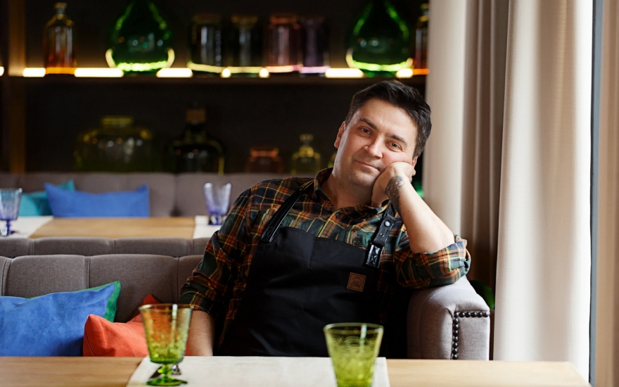 Мы готовим несложные, но затейливые блюда: говяжью грудинку — в соусе из шоколада, оленину — с мармеладом из кизила. Мне нравится, когда в ресторане приятная и неперегруженная еда. Но вот обработка продукта в процессе приготовления и креативная подача — это интересно.»