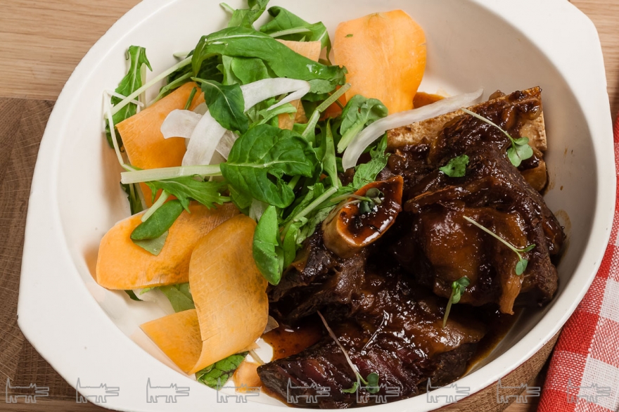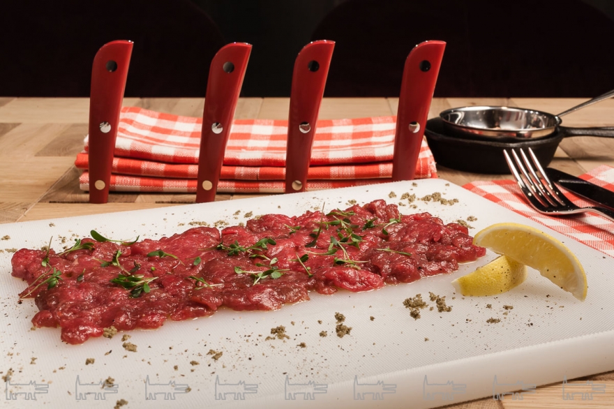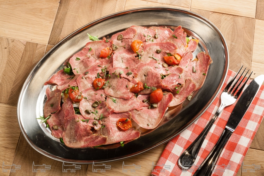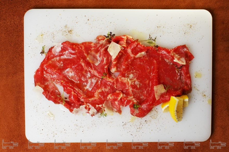 Качество исходного продукта настолько внушает доверие, что в меню включили батутту — просто отбитое иголками мясо с каплей оливкового масла. В Beefzavod едят корову действительно целиком — тем более, из зала видно и сами туши, и как их разделывают. В блюда идут печень — на гриле и со шпинатом, язык — тонкими слайсами с каперсами, ребра — томленые в пряном соусе. В качестве альтернативы говядине готовят цыпленка, стейк из тунца и едва отваренные овощи крудите.