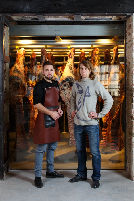 Команда, ответственная за резонансные Big Wine Freaks и «Морошка для Пушкина», сделала большой мясной проект: ресторан, лавку и производство колбас и терринов — разделочный цех и камеры вызревания гости видят через стекла.