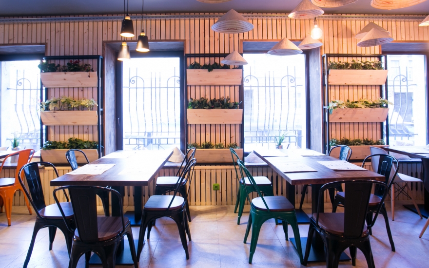 Вторая волна азиатских ресторанов в самом разгаре: Joly Woo, Black China, Mao, на подходе Mahjong и теперь — два вьетнамских Pho&Roll: первый на набережной Фонтанки, 97, второй — прямо в самом центре, на Жуковского. Последний вполне солидного для стритфуда размера. Основной зал — с большими окнами, барной стойкой с неоновой подсветкой и очень щадящей логистикой посадок, оставляющей много пространства. Вторая комната — более камерная с окном выдачи и телеэкраном, на котором транслируют кулинарные шоу, посвященные национальной кухне: вполне можно стать невольным свидетелем того, как, например, разделывают живую змею. За национальный колорит отвечают рассредоточенные повсюду вьетнамские шляпы ноны — в том числе парящие стайкой абажуров под потолком.