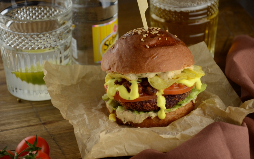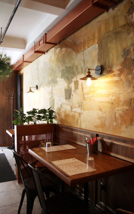Чтобы уйти от классической стилистики бургерных и не делать акцент на фаст-фуде, основатели поставили перед дизайнерами задачу смягчить атмосферу лофта — для этого в качестве декора используется много зелени, на кирпичных стенах нарисованы классические пейзажи французского Прованса, и повсюду развешены картины в стиле советских плакатов. В оформлении залов нарочито используется много элементов, казалось бы не совместимых, но все это очень интересно разглядывать после обеда или пока готовят любимый вегетарианский бургер.