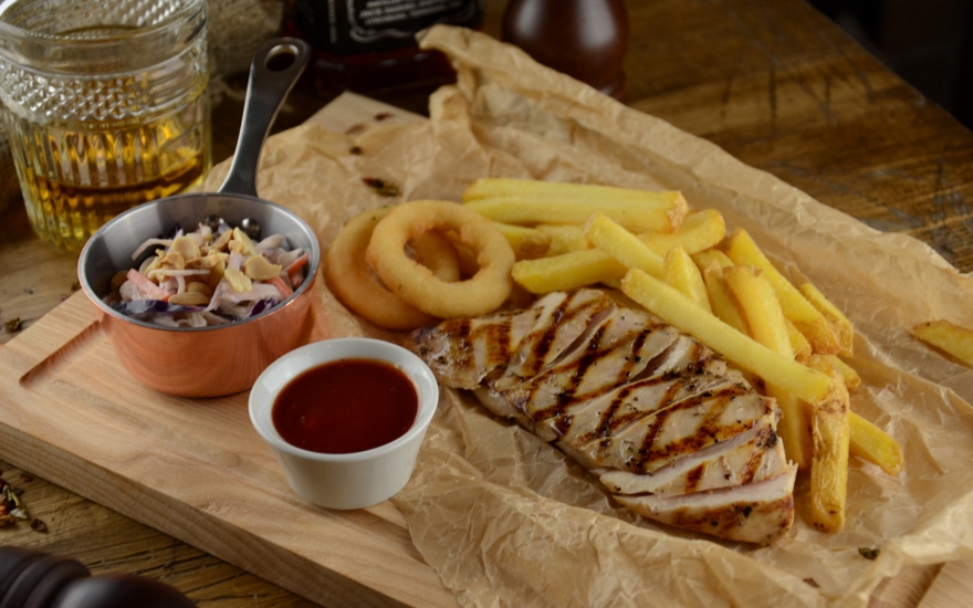 Не меньшего внимания требовала и проработка меню: всей команде хотелось уйти от стереотипа, что бургер — это вредно. Бренд-шеф Денис Ясько показывает, что если такое блюдо приготовить из качественных продуктов, по всем правилам рецептуры, да еще и на гриле с вулканической лавой, то оно будет не только вкусным, но и полезным. Гостям предлагают уже ставшие хитом бургеры с бифштексом из мраморной говядины, классику с котлетой из курицы, баранины или рыбы и вегетарианский бургер на основе шницеля из печеной свеклы. Все позиции из этого раздела подаются с салатом коул-слоу, а булочки, белые или черные, выпекаются тут же в ресторане. Команда поваров настроена в процессе работы и на эксперименты. Так, был придуман «золотой» бургер, покрытый пищевым сусальным золотом. В меню есть и традиционные для мясного ресторана блюда: классические салаты, свиные ребра на гриле, каре ягненка, крылышки BBQ и многое другое, без чего не могут обойтись подобные заведения.