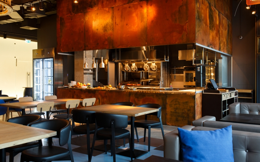 Меню: Список блюд стремится быть удобным всем, придерживаясь, в основном, классики — тут и диетические салат с киноа, и бургер со свиными ребрами. С инфернального на вид гриля Inferno Grill поставляют на столы блюда основного раздела. Если соки фланк-стейка подарены ему природой, то насытить ими же постную грудку индейки так, как сделано здесь — достоинство руки повара. Созвучно с последними трендами тут готовят самостоятельными блюдами овощи.