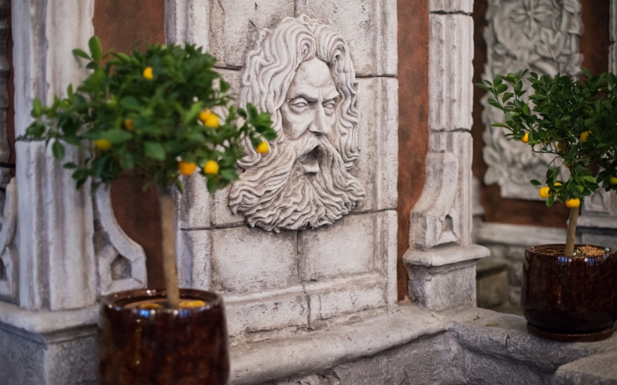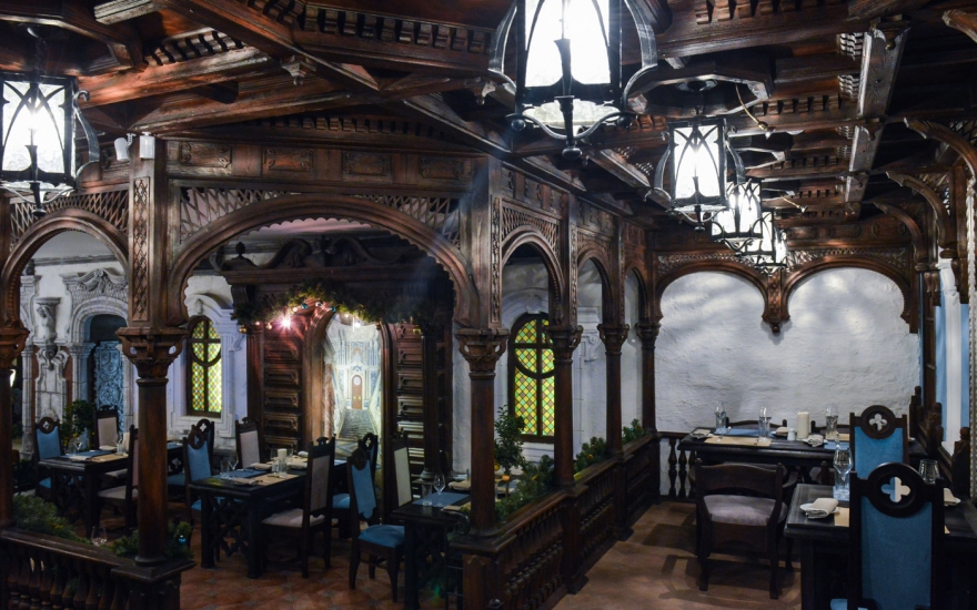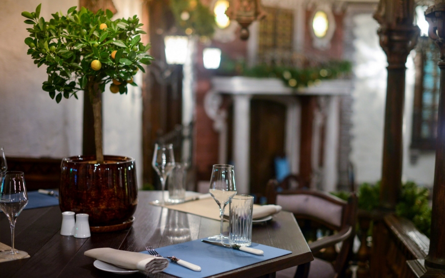 Перед художниками и дизайнерами стояла задача сохранить все достоинства интерьера, внести в него недостающую гармонию и придать аутентичности с помощью декора ручной работы и деликатной реставрации. Новые изразцы в деревянных панелях таверны выполнены на заказ в стиле традиционных испанских асулехос, дальняя стена андалусского зала и обшивка кресел приобрели насыщенный, но сдержанный голубой цвет, фрески были переписаны рукой профессиональных художников, а пространство теперь украсила авторская керамика с мавританскими мотивами одного из лучших мастеров Петербурга, Екатерины Тюминой.