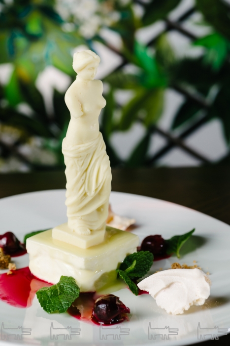 Сами салаты из меню похвастаться столь же слаженным гастрономическим эффектом пока не могут: треска и креветка, зачем-то покрашенные в голубой и зеленый, крабовые волокна, фруктовые ломтики и слайсы перца сами, похоже, недоумевают, как оказались в одном салате. Местной Венере Милосской из белого шоколада впору было бы оторвать руки, если бы они были — она несъедобна: знаменитая скульптура Афродита может быть чисто декоративным элементом в Лувре, но не на обеденном столе. В демократичном обеденном меню (действует до 17.00, комбинированными парами-тройками можно сочетать перемены блюд) не ясно, зачем чиабатту назвали сморребродом, хотя ростбиф в ней хороший. С мясом в принципе все не так плохо — бедро петуха более-менее сочное внутри, мясо на стейк пошло хорошее. В общем, шедевром еще позиции из меню не назовешь — а ведь обидно, когда во многом экспериментальному молодому искусству проигрывают даже борщ и куриный салат.