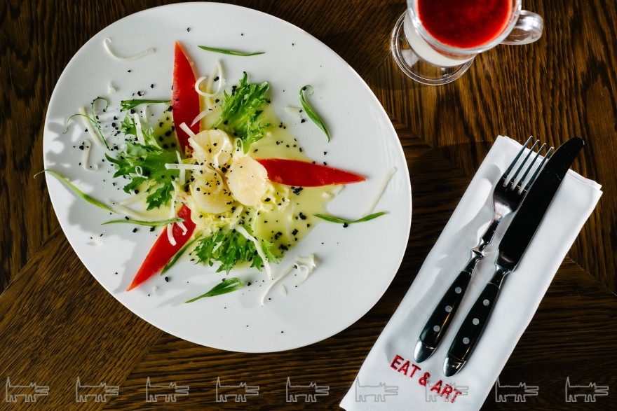 - Слово «галерея» в описании Eat & Art — не метафора, все художественные работы действительно можно купить, получив все необходимые при покупке объекта искусства документы.