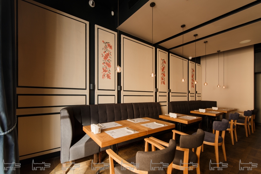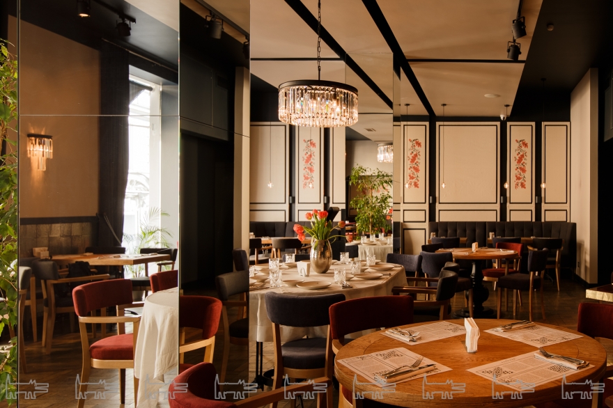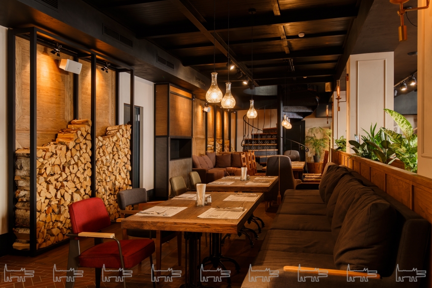 Новость о том, что за помещение на Дегтярной улице, много лет сдаваемое под общепит, возьмутся сами владельцы одноименных бань без опыта в больших ресторанных проектов, вызвало в индустрии нешуточную ажитацию: еще бы, эти стены помнят Михаила Долгополова с его высокохудожественным Skulptors и Арама Мнацаканова c его винным Simplebar. Уже можно констатировать, что вышло место со вкусом, отсутствия которого так все боялись — как к еде, так и к обстановке. С первого этажа даже изгнали дух предшественников — сделали свое архетипическое дело поленница и развешанные на крючках банные халаты. Однако на втором этаже, где осторожничали в стремлении сделать зал строже, за русскую самобытность отвечают только крайне деликатные орнаменты из дубовых листков — что, возможно, задумывалось как показательная интеллигентность, но ощущается как скородел.