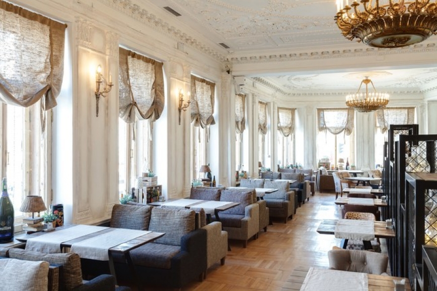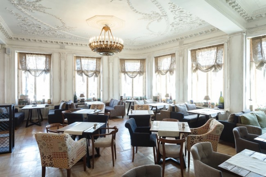 Содержание обычно диктует форму — это особенно верно для пивных ресторанов: архетип паба сложился давным-давно, и время модифицирует в нем только декоративные составляющие. Вместо гербов и рогов давно развесили жестяные таблички с пин-ап красотками и флаги футбольных клубов, однако — модным может паб не быть, но быть брутальным он обязан. Брутальным — читай темным, с нарочно огрубленными материалами и повсеместным наличием сопряженной с темой атрибутикой. Тем радостнее зайти за пшеничным или фруктовым пенным в просторное светлое помещение, где на медальонах двадцати шести кранов с разливным пивом в темное время суток поблескивают не только местные светильники, но и огни Невского, Литейного и Владимирского проспектов. Парадное настроение также, конечно, задают люстры с канделябрами и лепнина — изящные розетки и карнизы. Все это немного одомашнили. Каждое четвертое кресло — не строгой расцветки как предыдущие три, а в стиле пэчворка. Шторы драпировкой повторяют положенные классическому интерьеру воланы, но сама ткань — хлопок.
