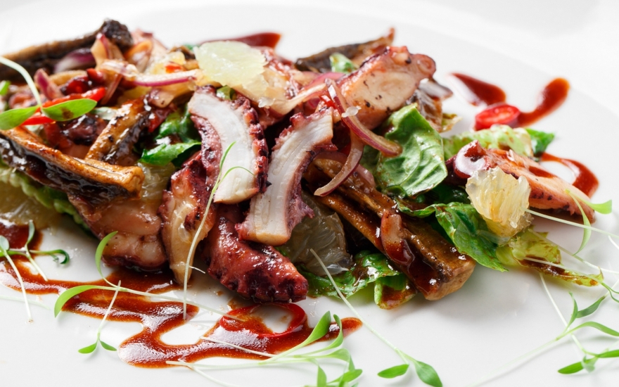 Если скумбрию замариновать с корицей, то пряная специя снимет илистое амбре рыбы и будет созвучна ее сладковатой жирности. Осьминог с острым лаймом и бананом — сочетание несколько избыточное: и цитрус, и приторный вяленый плод забивают хорошо сделанного гада. Все это — не умозрительное живописание гастрономических оксюморонов, а впечатления от блюд из нового меню «Лосось-бара».
