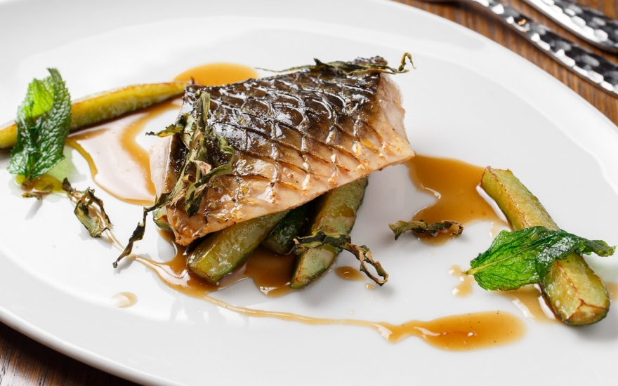 Уроков комбинаторики сладкого и соленого за обедом практически не избежать. Если невесомой от собственной нежности кефали с жаренными в меду огурцами чуть мешает нагрузка из вездесущего соуса на основе соевого, то муксун с «ложным кус-кусом», который на деле — пряная от трав рубленая цветная капуста с копченой грушей — прямо-таки идеальное уравнение вкусов. Не говоря уже о том, что муксун исключительно приготовлен — ни следов от врожденной жирности.