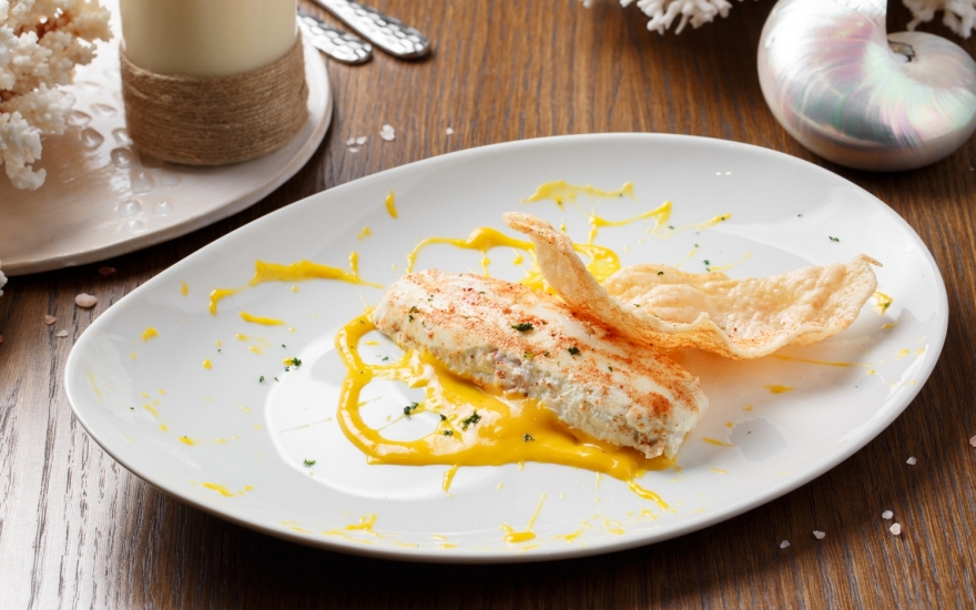 - Абсолютный маст — блюдо, которое в равной степени может служить и закуской, и десертом: крабовое мясо с крем-брюле — желтки, сахар, сливки, кокосовое молоко — с лимонным курдом с манго. Оно быстро снискало народную любовь — съели почти двести пятьдесят порций за две недели. Для полного портретного сходства с крабовым мясом сверху его посыпают сахарной пудрой с паприкой, которая дает красный колер.