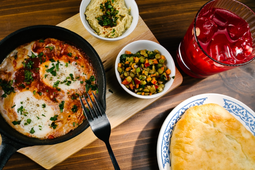 Команда израильского стритфуд-бара буквально в момент публикации присоединилась к резидентам острова: теперь и на Новой Голландии — культовые шакшука и фалафель.