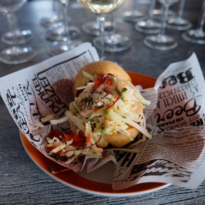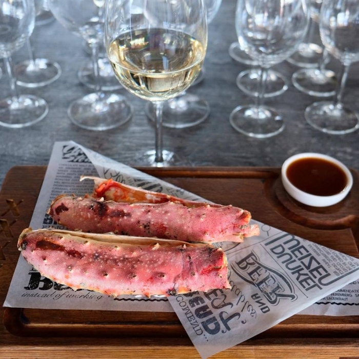 При создании меню ориентировались на то, что заведение рассчитано на времяпрепровождение с вином — то есть должно быть много закусок. На первой неделе работы кормили, кроме прочего, тартарами на хлебе с перепелиным яйцом, мини-бургерами, черными макаронами с паштетом из дичи и авторской репликой на чизкейк. Кроме вечеринок по выходным — в ближайшие, например, будет концерт проекта Tantsui — в заведении прошли гастрономические акции: «Том ям пати» или крабовое спецпредложение — один вечер фаланга и бокал пино гриджио стоили 999 рублей. Эту акцию хозяева собираются повторить, также планируются устричные вечера.