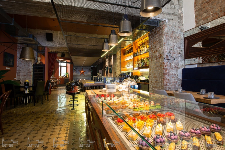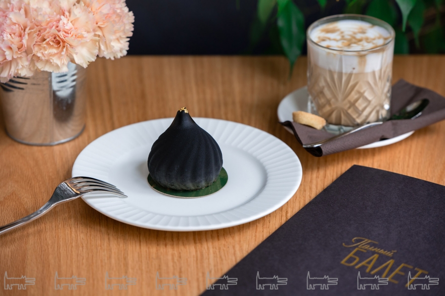 На входе вместо хостес тебя встречают пирожные и печенья, ювелирными драгоценностями разложенные в витрине. Девушка, решая, стоит ли задерживаться возле них, обязательно задумается, кто она — все-таки балерина, или скорее полная: ироничное название «Полный балет» каждый волен трактовать в соответствии с мощью своего ассоциативного мышления. Чизкейк с клубничным конфи на велкоме стоит не случайно — заведение открыли вместе с идеологами джазового бара The Hat Наталья Тепеницкая и Татьяна Иванова — последняя была соучредителем кондитерской «Бизе» на Моховой. Десертное меню при этом не связано с основным. Если в первом — международная классика эклеров, трюфелей, шу и тартов, то во втором — Россия в авторском исполнении: и не сказать, что идея закусить уху с полугаром персиковым конфи не оставляет когнитивного диссонанса. Интерьер, кстати, тоже скорее в кордебалете у кондитеров: здесь восстановленная метлахская плитка, окна и расстекловка зеркал в духе ар деко и немного романтичной живописи.