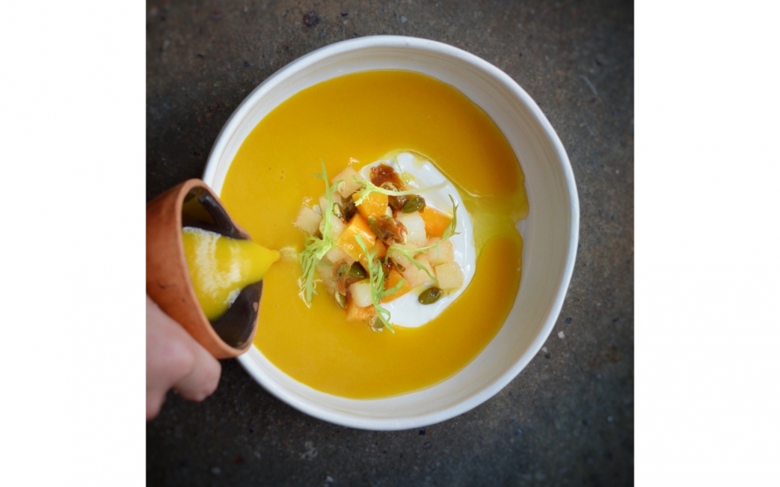 При создании меню я придерживаюсь идеи сезонности. А это значит использование продуктов на пике своих вкусовых качеств. Я каждый день езжу на Сытный рынок и общаюсь с поставщиками по поводу актуальных предложений и новинок, а потом выстраиваю меню вокруг тех ингредиентов, которые доступны именно сейчас. Поэтому у нас всего 25 блюд, а наш стейк из капусты даже номинирован как главное ЗОЖ-блюдо года».