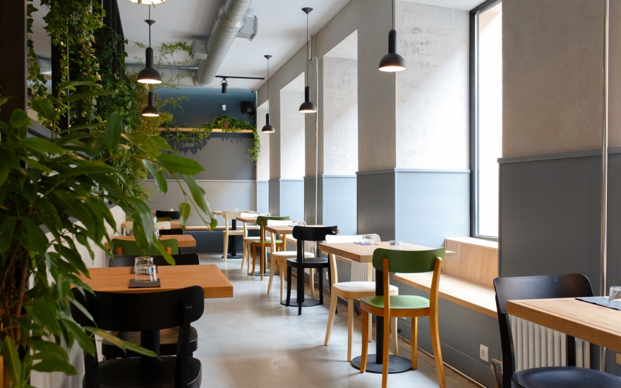 Интерьер: Интерьер разрабатывал Юрий Федоровов — дубовые минималистичные столы, состаренные зеркала, светло-серые стены, падающий из кашпо плющ и заросли черного бамбука.
