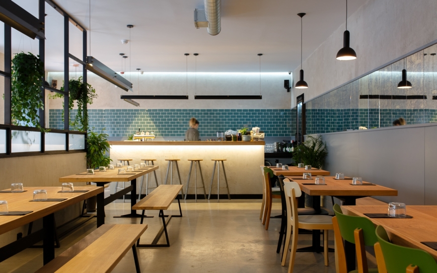 Интерьер: Работать над интерьером позвали бюро DA Architects: никаких стереотипов, лозы и всего того, что ассоциируется с рестораном грузинской кухни. Металлические детали, выполненные на заказ алюминиевые люстры, спокойная деревянная мебель — все с одной стороны аутентично, с другой — современно.
