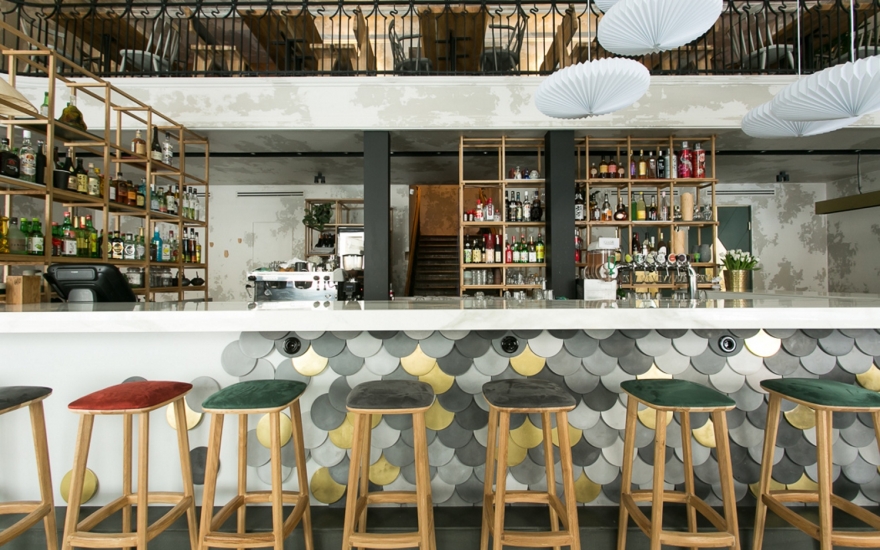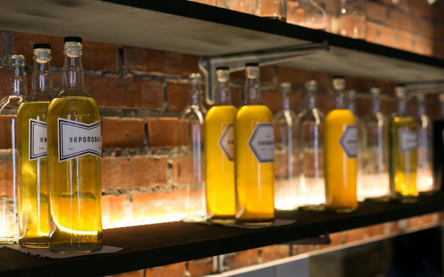 Интерьер: Идею создания рюмочной нам предложила Роксана Шатуновская, креативный директор компании «Айрис. Новая Голландия», а интерьер разработало «Бюро 11».