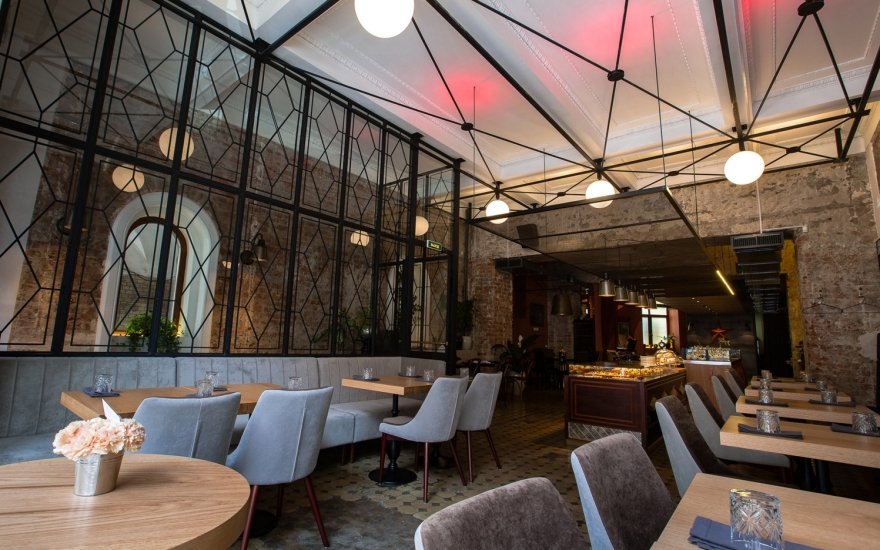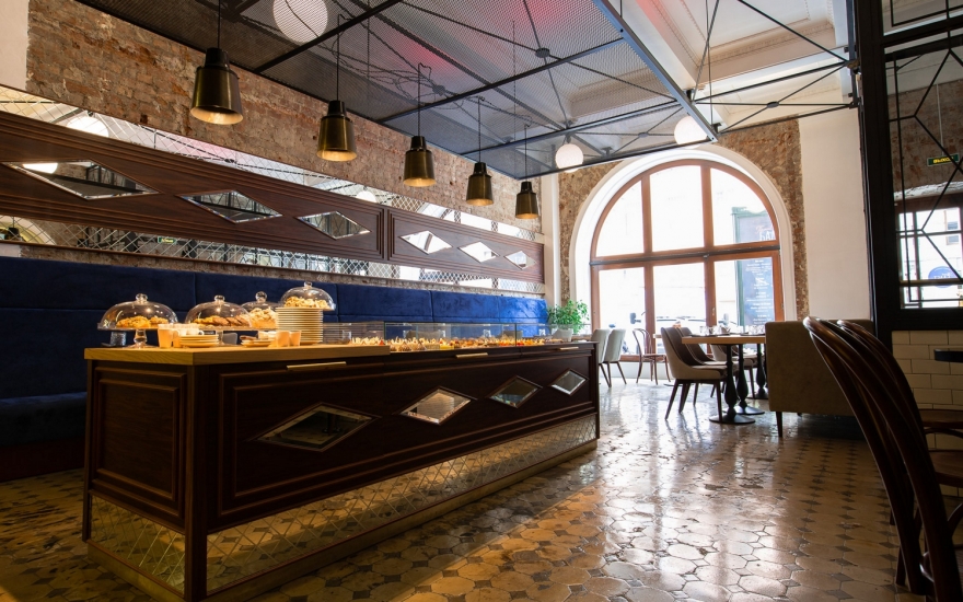 Интерьер: Интерьер, кстати, тоже скорее в кордебалете у кондитеров: здесь восстановленная метлахская плитка, окна и расстекловка зеркал в духе ар деко и немного романтичной живописи.