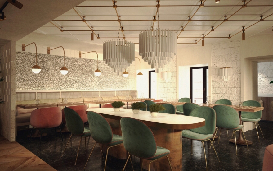 Интерьер: Дизайн-студия Paum, оформившая в том числе «Банщики» и Kabinet, ориентировалась в оформлении «Курортах» на интерьеры первой береговой линии Крыма: интуристовский шик 1980-х, позднесоветские министерские здравницы и буржуазные лаунжи. Открытие планируется в конце июня 2017 года.