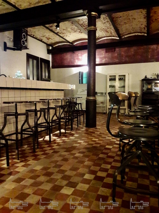 Интерьер разработали Сергей Семич и Анастасия Артемьева (бар Redrum, микропиццерия Camorra): в заведении создана атмосфера алхимической лаборатории, где бар выглядит как кафедра с лабораторным шкафом, за которым проводятся эксперименты. В зале есть длинный стол, за которым каждый посетитель может провести свой «опыт», стеклянный медицинский шкаф, который стал витриной. В центре зала расположилось черное фортепьяно позапрошлого века, на нем для гостей играют вечером. Днем же посетители смогут услышать музыку с катушечного магнитофона 1970-х годов. Все это дополняют чугунные колонны, подпирающие оголенные «берлинские» своды потолка, пол с полувековой шахтинской плиткой, два больших панорамных окна в пол и проглядывающий орнамент старых стен.