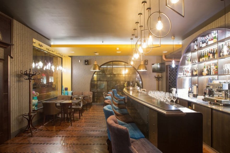 Заведение на пятьдесят гостей оформила дизайнер Мария Черняк: в брутальном интерьере преобладают железо и дерево, есть большое витринное окно и широкие мраморные подоконники.