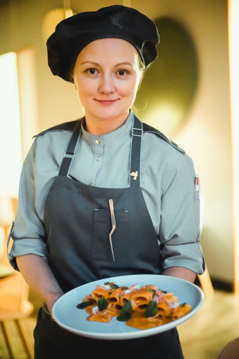 Центральная фигура нового заведения — молодой шеф-повар Людмила Жалнина. Среди этапов ее профессионального пути — ресторан «Глобус», Gusto, где она трудилась под руководством шефа-повара Фабрицио Фатуччи, и экобиологический проект на Карельском перешейке «Берния» профессора Антонио Менегетти, автора книги «Живая кухня». Отдельная страница биографии Людмилы — кейтеринг: ей доводилось заниматься подготовкой и проведением мероприятий разных масштабов, крупнейшие из которых — организация питания первых лиц государства: Дмитрия Медведева, Дмитрия Пескова, Георгия Полтавченко, Валентины Матвиенко, а также деятелей культуры и артистов. Владельцы ресторана отмечают, что «Людмиле не раз выпадала честь готовить для Медведева не только в ресторане, но и в его личной резиденции».