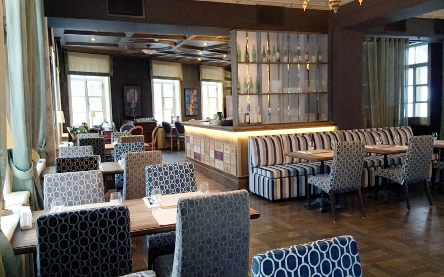 Новый ресторан Стерника Giacomo располагается в Пушкине в особняке XVIII века, принадлежавшем архитектору Джакомо Кваренги. Интерьер выполнен в классическом стиле с современными элементами декора — например, на мебели — геометрические принты.