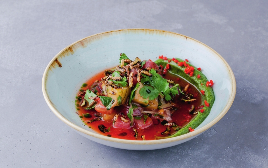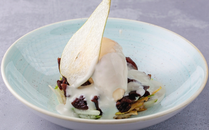 2. Севиче из тунца — чудо гастроэквилибристики: рыба, хурма, нори и юзу находятся в совершенном балансе. Именно техничность помогла Арслану Бердиеву в 2016 году победить в региональном отборочном туре и выступить в мировом финале конкурса молодых поваров S. Pellegrino Young Chef, перед которым он прошел стажировку у Владимира Мухина из White Rabbit, 23‑го в рейтинге лучших ресторанов мира.