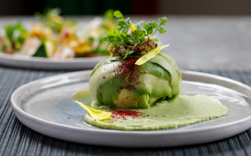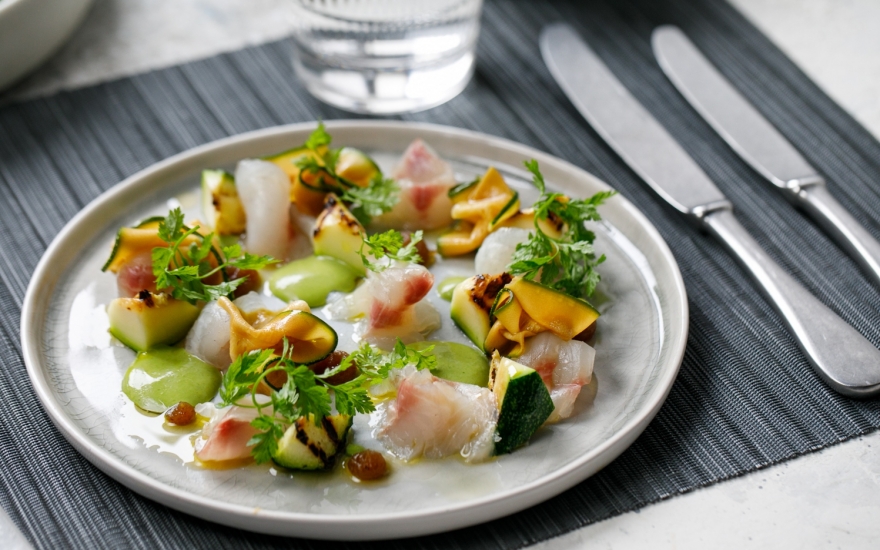 На старт приготовят закуски мезе — со свежей лепешкой приносят йогуртовый дзадзики с эстрагоном, томатный соус макбуху и хумус, буррату с томатами и кремом из фиников, кейл с иерусалимскими артишоками, сашими — из тунца, дорады или лосося и салат из сладких томатов, йогурта и нута. В горячих закусках среди прочего — фокачча с креветками, авокадо и цукини, печеный баклажан с тахиной и равиоли с артишоками. Основным курсом планируют кормить каре ягненка с табуле, уткой с черешней, креветками с орзо или сибасом с мидиями, на десерт советуют — тирамису с тахиной или клубничный пирог. В винную карту включат актуальную биодинамику и органику.