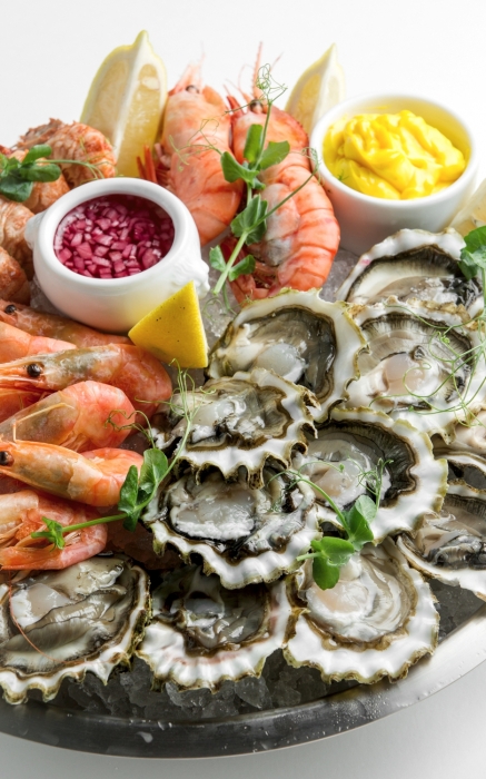 В новенький La Perla Seafood Bar раздел с сифудом переехал без изменений: пять видов устриц от императорской до дальневосточной, мидии, гребешки и спизула, ассортимент креветок от лангустинов до черных тигровых и краб. Суперпредложения — 1200 за двенадцать дальневосточных устриц или за пять морских ежей — тоже действуют. На это комбо не заканчивается: три устрицы с черной икрой — 1100, плюс несколько акций с одним из самых лучших шампанских на земле.