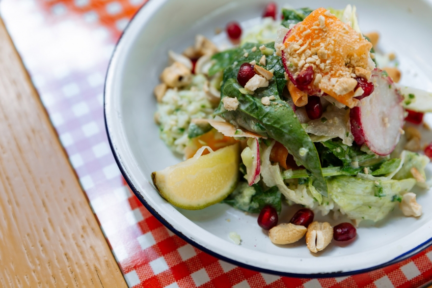 Меню наоборот, ничего общего с бесконечным индийским эпосом не имеет — две лаконичные страницы на все, включая алкогольные и без напитки. Берите салат из цветной капусты с нутом — хрустящие бобы и свежий огурец дают блюду искомую бодрость, глубокий по вкусу суп «Джинджер расам» из чечевицы с имбирем и карри — скажем, кокосовый с лангустинами или желтый с куриным бедром. Карри подают по умолчанию с хрустящей тонкой рисовой лепешкой, но лучше просить к нему пшеничный хлеб наам: соуса — например, зеленый или томатный чатни — им удобнее вычерпывать по конца, а сделать это обязательно захочется. Запивать — английскими элями и биттерами, домашним лимонадом на основе лимона, мяты, соли и содовой или коктейлями: мичеладой, где к лагеру вместо томатного сока идет грейпфрутовый, или колониальным твистом на апероль спритц на джине.