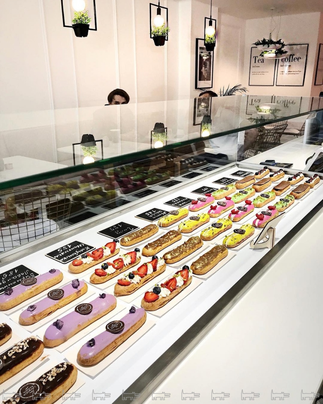 После поездки в Лондон я почти сразу пошла на мастер-класс по кондитерскому искусству, научилась делать десерты и решила: нужно открыть свою эклерную в Петербурге, таких в городе больше нет. Вели переговоры почти год, искали подходящее помещение, продумывали концепцию. Кажется, получилось».