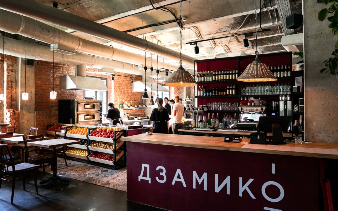 Помимо Gills, Кюлленен, Глазунов и Жуков запустили в июле еще и кафе «Дзамико»: теперь молодые рестораторы отвечают на острове «Новая Голландия» не только за рамен, но и за хачапури по-аджарски. В коротком меню классика: рулетики из баклажанов и ассорти из пхали, душистый аджапсандал, наваристая чихиртма, жаркое чанахи, спелые помидоры в салате из овощей. Кухня открытая – можно посмотреть, как лепят хинкали. В «Дзамико» они из тонкого теста и с достаточным количеством ароматного бульона, но не настолько большие, чтобы наесться тремя штуками, так что смело берите еще и лодочку по-аджарски или пробуйте ачму – здесь она сочная, между слоями тонкого теста, которое предварительно отваривают, очень много сулугуни и имеретинского сыра. Совсем скоро обещают винную карту.